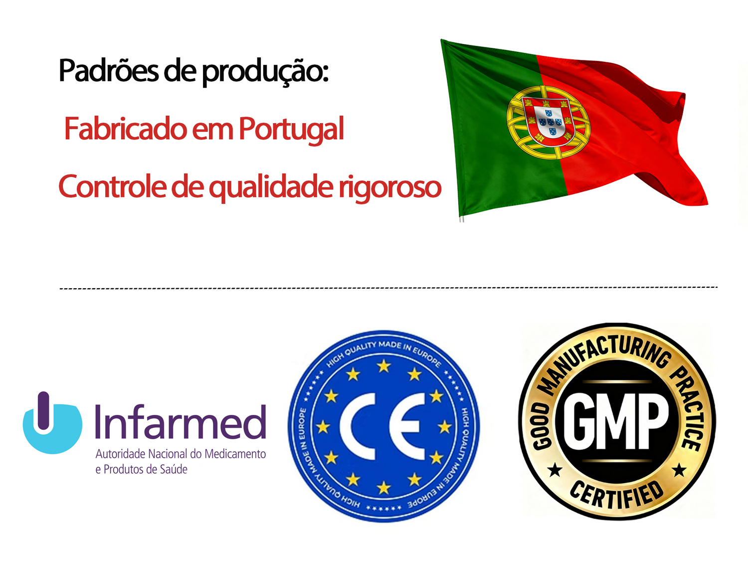 ✅ Clinicamente comprovado e certificado, aprovado pela Agência Nacional de Medicamentos e Produtos de Saúde de Portugal (INFARMED), com certificação CE, cumprindo os padrões de qualidade GMP.